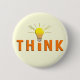 Ein einfaches Design, das "Denken" mit einer Glühbirne sagt, die den Buchstaben "I" in Gelb und Orange dotiert. Es gibt wache Linien um die Birne herum, die wohl Albert Einsteins unsauberes Haar darstellen könnten.