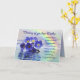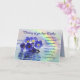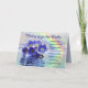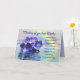 Schöne blaue vergessene-me-nots auf einem See mit einem Regenbogen hinter sich. Ein schöner Vers vervollständigt diese einzigartige Karte perfekt.