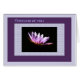 Hübsches Design für ein Denken an Sie Karte, die an jeden geschickt werden könnte. Das Bild ist eine lila Wasserlilie mit einem lila Rahmen und einem grauen Hintergrund.