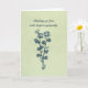 "Denken Sie an Sie mit tiefem Beileid" in beruhigenden Farben des Beileids für Ihren Verlust, mit einem Stamm von blauen Blumen und einem Schmetterling auf einem hellen texturierten Hintergrund. Inside: Ihr Leid wird von vielen geteilt, die sich um Sie kümmern. Mögen Sie Trost finden, wenn Sie wissen, dass Sie nicht allein in Ihrem Kummer sind.