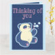 Phantastisches Grußkartendesign mit einem niedlichen Panda, der Blasen bläst. Es enthält das Zitat "Denken Sie an Sie". Sie können es anpassen und Ihren Text darauf hinzufügen. Viel Spaß!