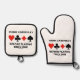 Zeigen Sie Ihre wry bridge / duplizierte Bridge-Einstellung, wenn Sie das nächste Mal backen oder kochen mit diesem Ofen Mitt und Pottenhalter-Set mit den vier Karten-Anzügen zusammen mit den folgenden Sound-Bridge-Ratschläge: "Vorsicht vor Spielen Trick One".