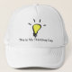 Hut mit einer Glühlampe, der sagt, dass dieses meine denkende Kappe ist