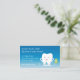 Un carte de visite pour des dentistes ou des hygiénistes dentaires avec la dent de sourire tenant la soie dentaire sur un arrière - plan bleu.