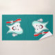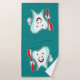 Serviettes avec l'illustration d'une grande dent blanche de style dessin animé souriant joyeusement en tenant une brosse à dents rouge et en donnant le signe pouce vers le haut.