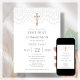 Célébrez la première sainte communion de votre enfant avec nos élégantes et intemporelles invitations à la première sainte communion, avec une délicate bordure en dentelle blanche et un étonnant crucifix à effet or sur un arrière - plan blanc. Ces invitations sont parfaites pour commémorer cette étape importante du voyage religieux de votre enfant. Nos invitations sont conçues pour être faciles à personnaliser, afin que vous puissiez ajouter votre propre texte et vos détails sans effort. De plus, ils sont disponibles en téléchargement instantané, ce qui vous permet de les imprimer facilement et de les envoyer à vos invités sans délai.