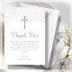 Merci à vos proches pour leur présence et les cadeaux réfléchis sur la journée spéciale de votre enfant avec nos belles Cartes de Remerciements Baptême. Avec une croix d'or sur une délicate impression dentelle sur un arrière - plan blanc et personnalisable lettrage bleu foncé élégant, ces cartes sont la façon parfaite d'express votre gratitude d'une manière élégante et sophistiquée. L'impression en dentelle supérieure sur un arrière - plan blanc ajoute une touche d'élégance et est complétée par un lettrage bleu poussiéreux personnalisable, faisant de chaque carte une expression unique et personnalisée de votre appréciation. Le revers de la carte est également dans un beau bleu poussiéreux pour ajouter une touche de couleur et améliorer le design général. Avec l'option d'utiliser l'accueil fourni ou de customiser avec votre propre, ces cartes fournissent une touche personnelle qui fera de vos proches se sentir apprécié et spécial.
