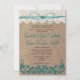 Le haut de l'invitation a une bordure en dentelle imprimée avec un arc de cercle bleu turquoise. Le papier vintage est légèrement texturé, bien qu'il s'agisse d'une invitation imprimée à plat. Ces invitations vintages à un mariage marron et turquoise sont des invitations imprimées à plat; ce n' est pas de la ficelle, ni de la dentelle. Ce design imprimé vous donne le LOOK d'une invitation en papier vintage en couches qui est attachée main avec un arc, mais avec les prix réduits d'une invitation imprimée. C'est juste un dessin imprimé, l'invitation est plate. L'arrière de l'invitation a le dessin imprimé de burlap avec le mot "Amour" en script, également en bleu turquoise. Vous pourriez changer cette formulation pour la personnaliser avec les noms de la mariée et du marié si vous le vouliez. Ces invitations à des mariages à thème country sont parfaites pour les mariages campagnards rustiques, les mariages à thème vintages, les mariages de cow-boy, les mariages de grange ou tout mariage qui utilise le burlap comme décor de réception de mariage et qui a le bleu turquoise ou turquoise comme une de leurs couleurs mariages.