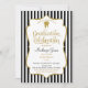 Une élégante invitation à la remise des diplômes de l'école dentaire en noir et or avec cadre d'accent de parties scintillant en faux or et rayures noir et blanc avec texte or et noir et un stéthoscope. Cet élégant invitation de la fête de remise des diplômes en dentisterie est idéal pour le dentiste, l'hygiéniste dentaire, le chirurgien buccal, l'orthodontiste ou toute autre grade de dents.