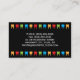 Carte de visite noir avec une bordure de dents colorées haut et bas. Zones de texte personnalisables pour, nom, titre, numéro de téléphone, adresse, e-mail, etc. Convient aux dentistes, orthodontistes, hygiénistes et assistants dentaires et à toute personne travaillant avec les dents sous quelque forme que ce soit.