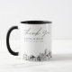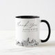 Moderne Denver Skyline Kaffeemaschine Tasse bevorzugt Geschenk mit "Dankeschön" Skript. Das Design zeigt eine atemberaubende Skizze mit der Möglichkeit, Ihre Namen und den genauen Standort anzupassen. Geben Sie das Zazzle Design Tool für zusätzliche Anpassungen ein.