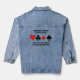 Es-tu un passionné de bridge player ? Avez-vous du temps libre depuis que vous êtes devenu un joueur de pont ? Montrez votre sens de l'humour du pont wry/double avec cette veste en denim avec les quatre costumes de carte avec le dicton "Depuis que j'ai commencé à jouer au pont, il est devenu impossible d'avoir du temps libre".