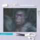 Phantastischer Künstler, der eine Makaken mit hellen, intelligenten Augen mit den subtilen Touchs des Regenwalddschungels darstellt