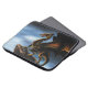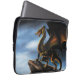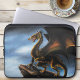 Drache am Rand einer Klippe, blauer Himmel, Berge.