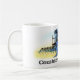 Fügen Sie Ihren Namen oder Mitteilung Mähdrescher-Kaffee-Tasse dieses cooler Name-Bauern hinzu. Ein großes großes blaues landwirtschaftliches Bauernhoffahrzeug mit großem Gelb dreht herein eine Maisernte von einer Malerei durch Paul Stickland für Truckstore.