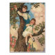 Vintage KinderIllustration, die einem Jungen und Mädchen zeigt, wie sie einen Baum für Äpfel klettern.