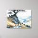 Ein charmantes, Vintages Wandergebiet, das durch einen Bergpass wandert, mit goldfarbenen, gelben und blauen Farbtönen, die eine ruhige, friedliche Szene der Frühlings- und Sommertage schaffen.