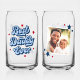 Glass mit dem Text "Best Daddy ever" in einem Retro-Schriftart umgeben von roten Sternen. Auf der Rückseite ist eine anpassbare Fotovorlage mit mehr Sternen. Die Standardfarben sind blau, rot und weiß, aber alle Farben können im Designwerkzeug angepasst werden.