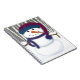 Puffe der Schneemann ist für den ersten Schneefall der Wintersaison vorbereitet. Er ist mit seinem bunten und flauschigen Hut und Schal voll gestopft.