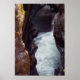 Ein Foto des Wassers, das gegen den Stein tief in der Erde pocht. Jahre des Wassergießens durch den Stein haben viele Kurven entlang dieser tiefen Flussmauer erzeugt. Dieses Foto wurde auf dem Box Canyon Loop Trail in Mount Rainier Nationalpark aufgenommen, der sich in Washington Staat befindet. Copyright Kimberly J Tilley.