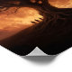 Unter einem Himmel verblasst Feuer und Schatten, erstreckt sich ein riesiger Baum tief in die Erde, als würde er die Realität selbst verankern. Über seiner Krone erhebt sich ein blutroter Mond, der einen ominösen Glanz ausstrahlt, der die Himmel im Krümel malt. Die Figuren sammeln sich an der Basis des Baumes, ihre Silhouetten klein gegen seine riesige, gegrabene Form, als ob gezeichnet wäre, ein altes Ritual oder ein weltweites Omen zu erleben. Die Szene fühlt sich sowohl ewig als auch apokalyptisch an - ein Bild der Schöpfung, Zerstörung und der zerbrechlichen Verbindung zwischen Sterblichen und Kosmos.