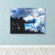 Mann mit Pfeil und Bogen in Silhouette mit Bäume im, blauem Himmel und Wolken