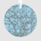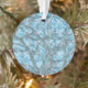 Ein Art Weihnachtsdesign eines blätterlosen Baumes, Schnee fällt auf eine kalte Nacht mit Monden im blauen Himmel.
