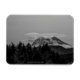 Ein Schwarz-Weiß-Foto des Berges Rainier. Im Vordergrund sind Baumreihen, und am Fuß von Rainier sind Hügel. Hinter dem schneebedeckten Vulkan verbirgt sich eine große, interessant geformte Wolke. Für einige sieht es wie eine antike Darstellung eines Raumschiffes aus, für andere ist es eine menschliche Form. Wie sieht die Wolke für dich aus? Image Copyright ©2023 Kimberly J Tilley. zazzle.com/store/developingnature