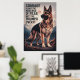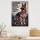 Ein deutscher Schäferhund steht stolz auf einem Berggipfel, mit einem motivierend Zitat über Mut, Mut ist nicht die Abwesenheit von Angst, sondern der Triumph darüber, oben gezeigt. Die Hunde vertrauen auf Pose und den landschaftlichen Hintergrund, rufen ein Gefühl von Kraft und Entschlossenheit hervor.