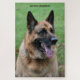 Dies ist ein großes Puzzle eines deutschen Schäferhundes (auch bekannt als Alsationshund). Die Wörter "German Shepherd" stehen oben im Puzzle, aber Sie können sie ändern oder entfernen, wenn Sie wollen. Das ist ein sehr gut aussehender Hund, er sitzt und fotografiert von vorne, wobei der Hauptfokus des Fotos auf dem Hundegesicht liegt.