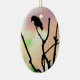 Einsame Krähe auf einem Zweig in der Silhouette gegen einen sonnenunterlassenen, bunten Bokeh-Himmel, wie ein großer Blauer Held wegfliegt... Hergestellt durch die Kombination von 2 Fotos, die ich zusammen und einige bunte Bearbeitung