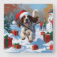 Der englische Setter läuft im Schnee mit Weihnacht Quadratische Wanduhr