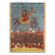 Fand der das Fliegen-Teppich der persische Schule, vom Gedicht "Layla und Majnun" durch Nizami am Nationalmuseum, Damaskus, Syrien. Der Fliegen-Teppich, vom Gedicht "Layla und Majnun" durch Nizami wurde um das 18. Jahrhundert hergestellt.