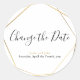 Die geometrische Goldeffekthochzeit ändert den Datumsaufkleber. Hochzeit Ändern Sie den Datumsaufkleber. Hochzeitlicher Umschlag Aufkleber. Moderne goldene geometrische Form Verändern Sie den Datumsaufkleber, um Ihre Einladungen abzuschließen und an Ihre Gäste zu senden. Diese moderne Änderung des Datums-Aufklebers enthält Ihre Namen und Hochzeitstermin mit modernen goldenen Effekt geometrischen Rand und "Ändern Sie das Datum" in einem passenden goldfarbenen eleganten Skript geschrieben. Sie können die Textfarben so ändern, dass Sie Ihren eigenen Stil Anzug haben. Bitte beachten Sie, dass der Goldeffekt gedruckt ist.