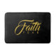 Visuelles Wortspiel Textdesign mit der ersten Zeile in einem sehr schönen, fett gedruckten Schriftart über der zweiten Zeile mit kleinen, weit auseinander stehenden Buchstaben. Behalt das inspirierende Sprichwort 'Glaube über Angst' für eine Gabe der Ermutigung, oder verwende die Textvorlage, um ein neues inspirierend Zitat zu erstellen. Ändern Sie den goldenen Text und den schwarzen Hintergrund in beliebige Farben. ♡ Idyllfire