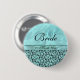 der grauen Blumendamast Hochzeits-Braut des Aqua Button