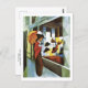Eine Kunstpostkarte mit dem Gemälde des deutschen Expressionisten August Macke (1887-1914) mit dem Titel Hat Shop (1914). Eine Frau mit einem orangefarbenen Sonnenschirmfenster, die in einem Hutladen einkauft.