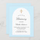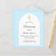 Ein hellblauer Hintergrund und ein weißer Bogen. Personalisieren und einen Namen und Zeremonie Details. Elegantes handgeschriebenes Stilskript. Zurück: hellblauer Hintergrund.
