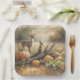 Eine in der Nähe eines Kürbispflasters stehende Fabe, die einen kleinen Vogel auf einem Baumstamm beobachtet