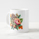 Diese Kaffeemaschine in Jumbo-Tasse wird mit einem hübschen Herbstpinecon und einem prächtigen Blumendruck gezeigt. Passen Sie dieses Objekt an oder kaufen Sie, wie es ist. Lizenziertes Bild