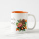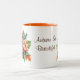 Die Tasse des Kaffees wird mit einem hübschen Herbstpinecon und einem Akkorn mit Blumenausdruck gezeigt. Der Herbst ist ein schöner Text. Passen Sie dieses Objekt an oder kaufen Sie, wie es ist. Lizenziertes Bild