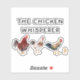 Fantastisches Aufkleber für Hühnerliebhaber und Bauern mit Aquarellbildern für Hühner und einem Küken mit einem Text, der "das Hühnerflüstern" sagt