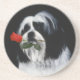 Eine Hundezucht-Fotografie Shih Tzu, die eine Rose in seinem Mund hält.