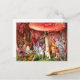 Postkarte mit John Anster Fitzgeralds Gemälde Der Intruder (1865). Farbenfrohe Feen umgeben einen roten Pilz in einem grünen Wald, da der Eindringling, ein Frosch, sie stört. Ein perfektes Geschenk für Märchenfreunde und Viktorianische Kunstsammler!