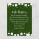 Die irische Postkarte "Inspiration Segen" zeigt einen dunkelgrünen Hintergrund mit weißen Kleeblättern. An der Vorderseite befindet sich der geliebte Segen: "MAY THE ROAD up to meet you. KANN DER WIND immer auf dem Rücken sein. KÖNNEN SIE DIE SONNE auf Ihrem Gesicht wärmen; die Regenfälle fallen sanft auf Ihre Felder und bis wir uns wieder treffen, MAY GOTT HOLD YOU in the palm Seiner Hand." Der hintere Gruß kann angepasst werden und die Karte kann für viele Gelegenheiten benutzt werden._