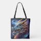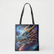 Ein brauner Drache mit blauem Gesicht ist Set vor dem Hintergrund von Sternen und Planeten auf dieser fantastischen, fantastischen Tote-Tasche. Perfekt für alle, die Drachen, Mythen und Magie Lieben!