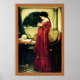 Der Kristallball (1902) ~ Kunstposter. John William Waterhouse (1849-1917). Schönes Bild einer Frau, die in eine Kristallkugel guckt, die sie in den Händen hält. Neben ihr steht ein Tisch mit einem offenen Buch und einem Schädel. Wir haben diesem Bild zusätzliche ergänzende Grenzen hinzugefügt. Auch auf anderen Produkten haben wir diesen Kunstdruck.