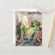 Funny Illustration von Theodor Kittelsen aus seiner Reihe von Wasserfarben mit dem Titel "Har Dyrene Sjæl?" (Haben Tiere Soule?), veröffentlicht im Jahr 1893. Diese Abbildung heißt "Brilliant!" Ein Frosch mit einem Mopp grüner Haare, der eine Farbpalette hält, schaut stolz auf sein Gemälde an einem Stein, während Schläger in Anzügen seine Arbeit bewundern.