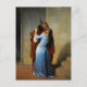 Postkarte mit dem italienischen Bild The Kiss (1859). Ein Paar, auch bekannt als Il Bacio, umarmt sich in einem romantischen Kuss. Hayez benutzt Symbolik, um heimlich die Allianz zwischen Frankreich und Italien auszudrücken. Ein wunderbares Geschenk für Liebhaber der italienischen Romantik.