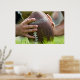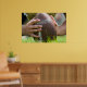 Ein Poster mit den Händen eines Fußballlangschnappers während der Übung.